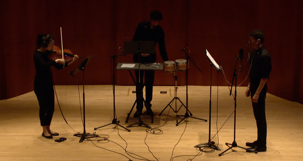 tkpt, for amplified voice, viola and percussion (2022)